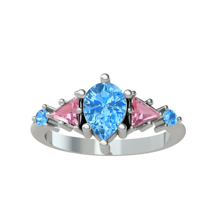 Akuamarin ve pembe kuvars 925 ayar gümüş yüzük
