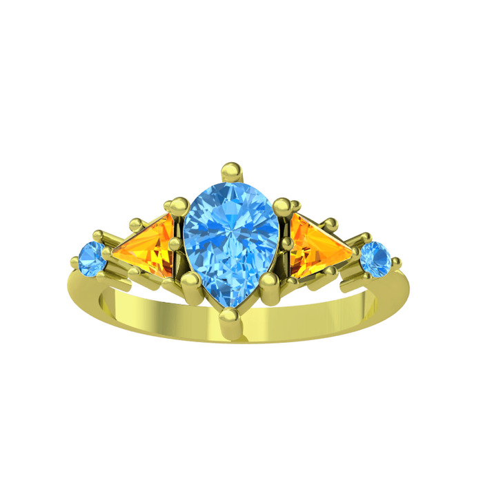Akuamarin ve sitrin 18 ayar altın yüzük
