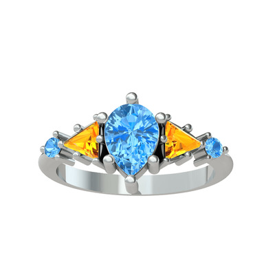 Akuamarin ve sitrin 8 ayar beyaz altın yüzük