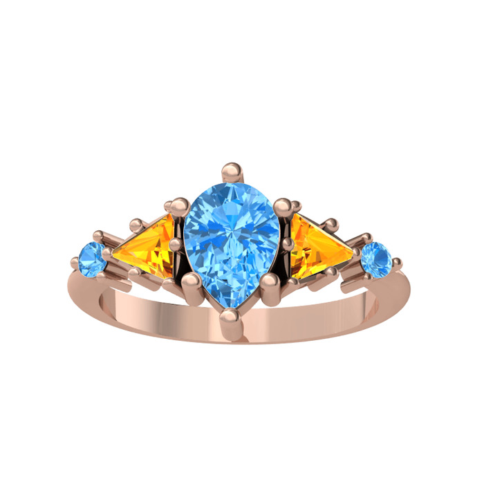 Akuamarin ve sitrin 925 ayar rose altın kaplama gümüş yüzük