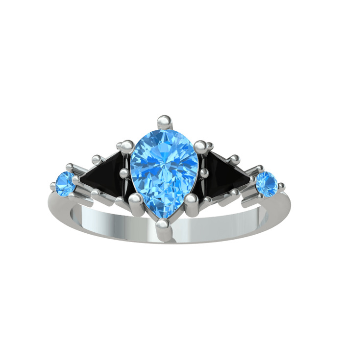 Akuamarin ve siyah zirkon 18 ayar beyaz altın yüzük
