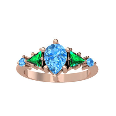Akuamarin ve yeşil kuvars 18 ayar rose altın yüzük