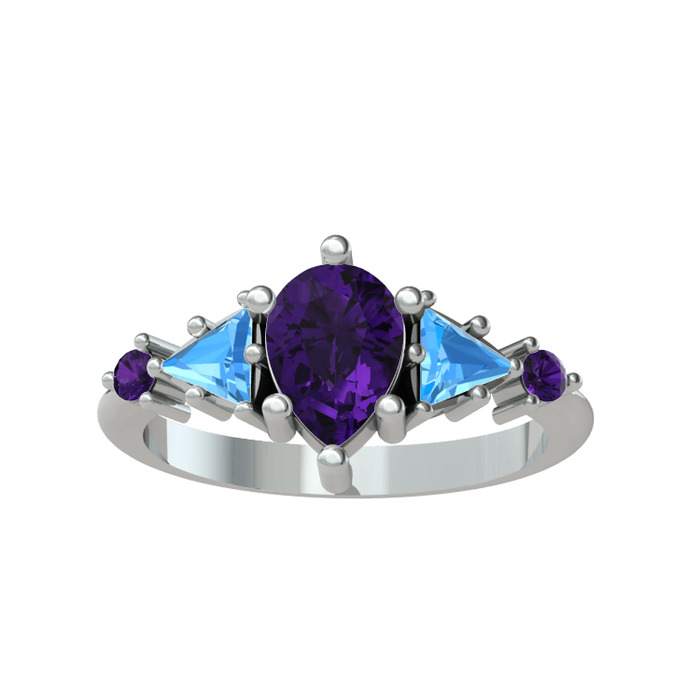 Ametist ve akuamarin 8 ayar beyaz altın yüzük