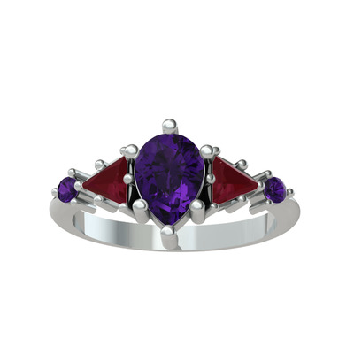 Ametist ve kök yakut 18 ayar beyaz altın yüzük