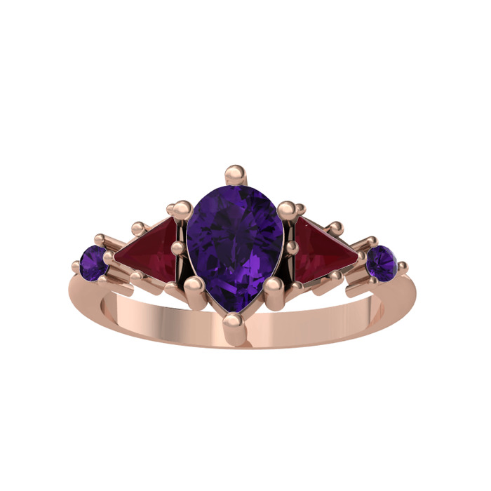 Ametist ve kök yakut 8 ayar rose altın yüzük