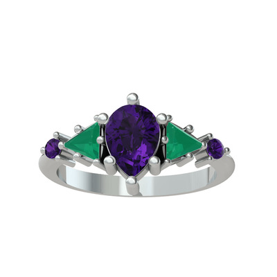 Ametist ve kök zümrüt 925 ayar gümüş yüzük