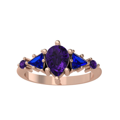 Ametist ve lab safir 14 ayar rose altın yüzük