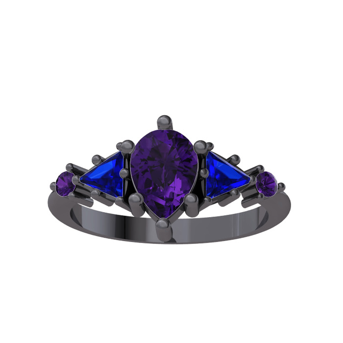 Ametist ve lab safir 925 ayar siyah rodyum kaplama gümüş yüzük