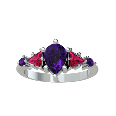 Ametist ve rodolit garnet 14 ayar beyaz altın yüzük