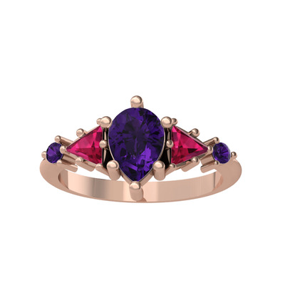 Ametist ve rodolit garnet 8 ayar rose altın yüzük