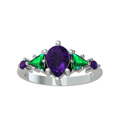 Ametist ve yeşil kuvars 18 ayar beyaz altın yüzük