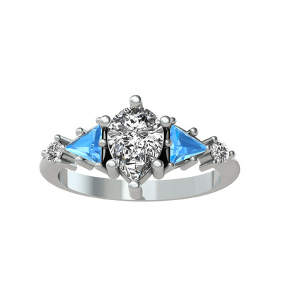 Beyaz zirkon ve akuamarin 14 ayar beyaz altın yüzük