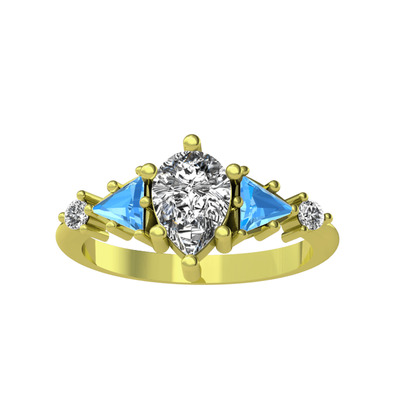 Beyaz zirkon ve akuamarin 8 ayar altın yüzük