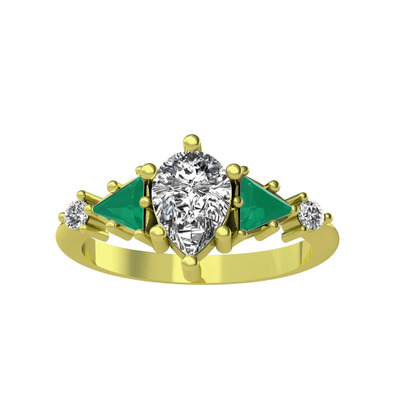 Beyaz zirkon ve kök zümrüt 925 ayar altın kaplama gümüş yüzük