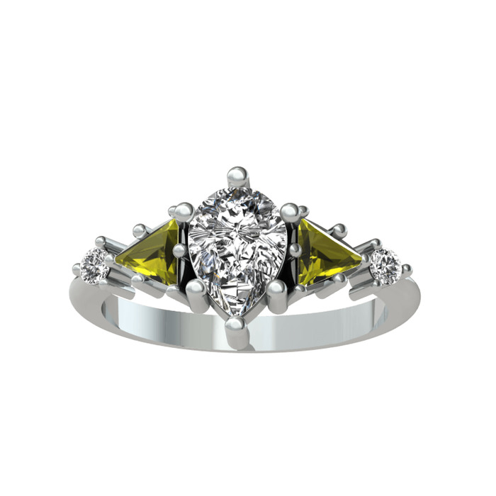 Beyaz zirkon ve peridot 8 ayar beyaz altın yüzük