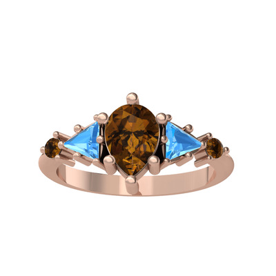 Dumanlı kuvars ve akuamarin 14 ayar rose altın yüzük