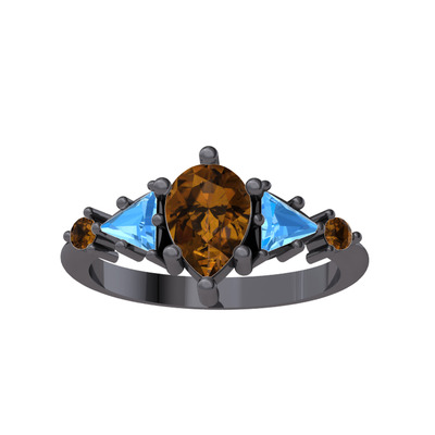 Dumanlı kuvars ve akuamarin 925 ayar siyah rodyum kaplama gümüş yüzük