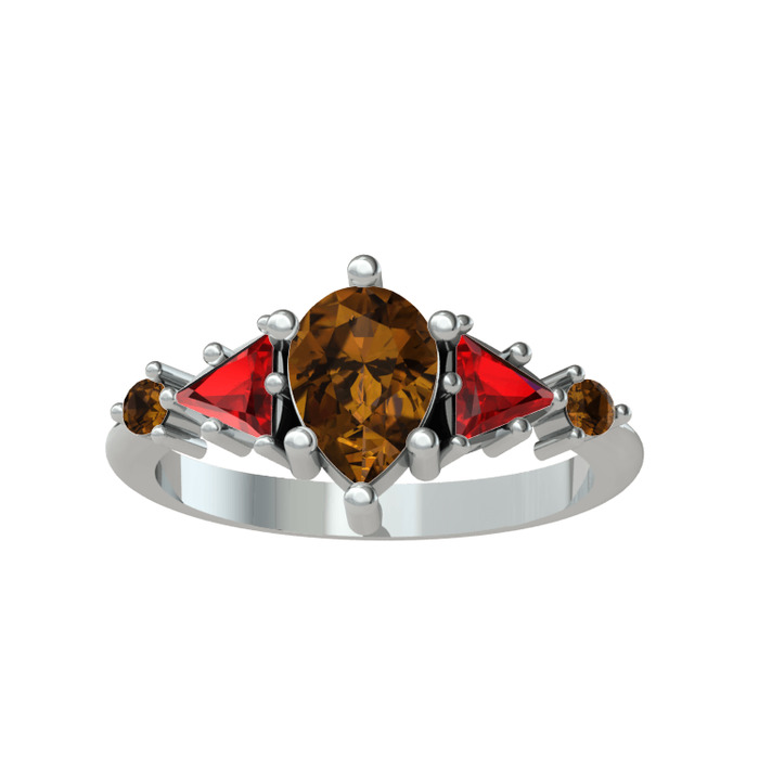 Dumanlı kuvars ve garnet 8 ayar beyaz altın yüzük