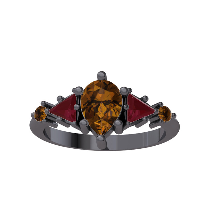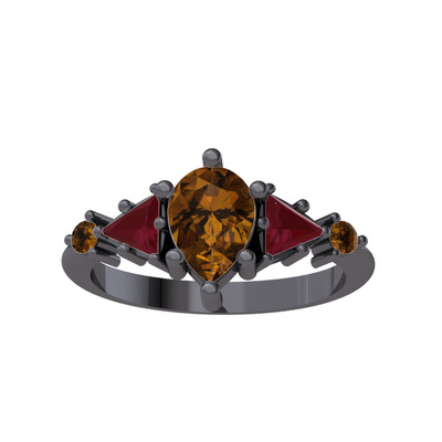 Dumanlı kuvars ve kök yakut 925 ayar siyah rodyum kaplama gümüş yüzük