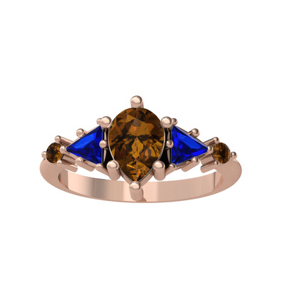 Dumanlı kuvars ve lab safir 18 ayar rose altın yüzük