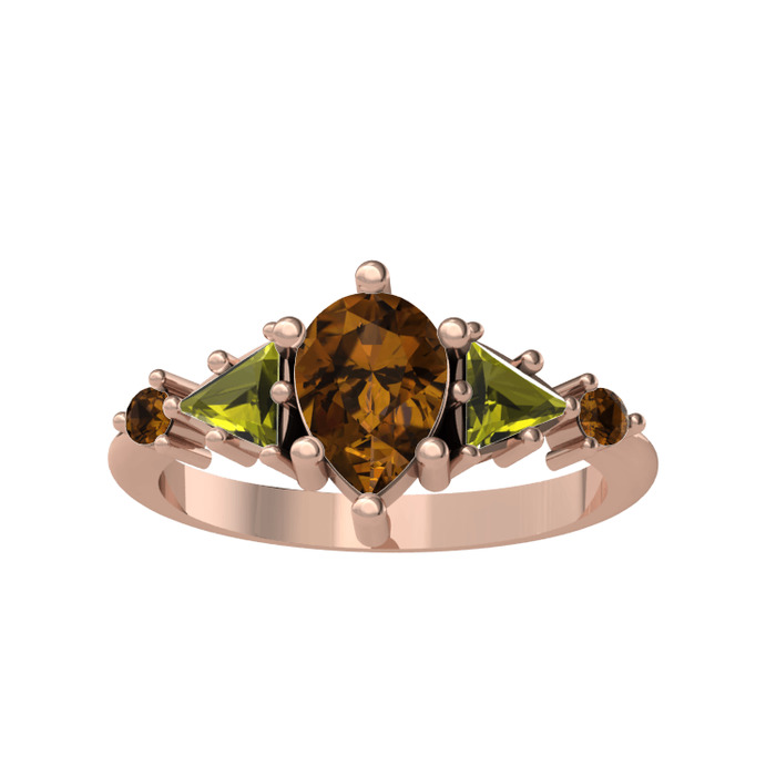 Dumanlı kuvars ve peridot 14 ayar rose altın yüzük