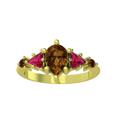 Dumanlı kuvars ve rodolit garnet 18 ayar altın yüzük