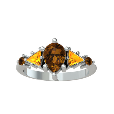 Dumanlı kuvars ve sitrin 8 ayar beyaz altın yüzük