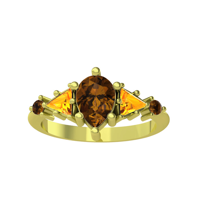 Dumanlı kuvars ve sitrin 925 ayar altın kaplama gümüş yüzük