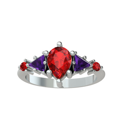 Garnet ve ametist 18 ayar beyaz altın yüzük
