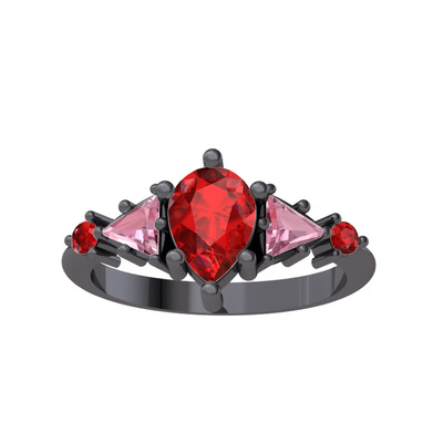 Garnet ve pembe kuvars 925 ayar siyah rodyum kaplama gümüş yüzük