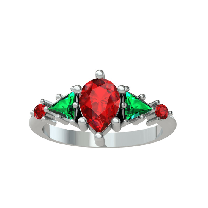 Garnet ve yeşil kuvars 14 ayar beyaz altın yüzük