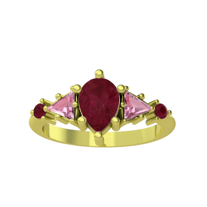 Kök yakut ve pembe kuvars 14 ayar altın yüzük