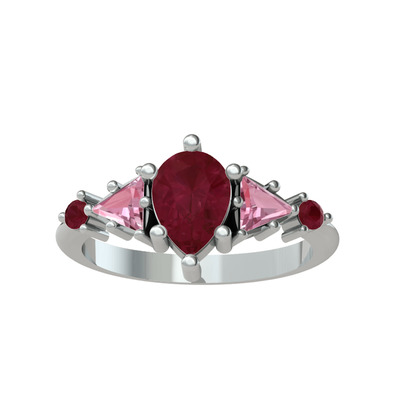 Kök yakut ve pembe kuvars 14 ayar beyaz altın yüzük