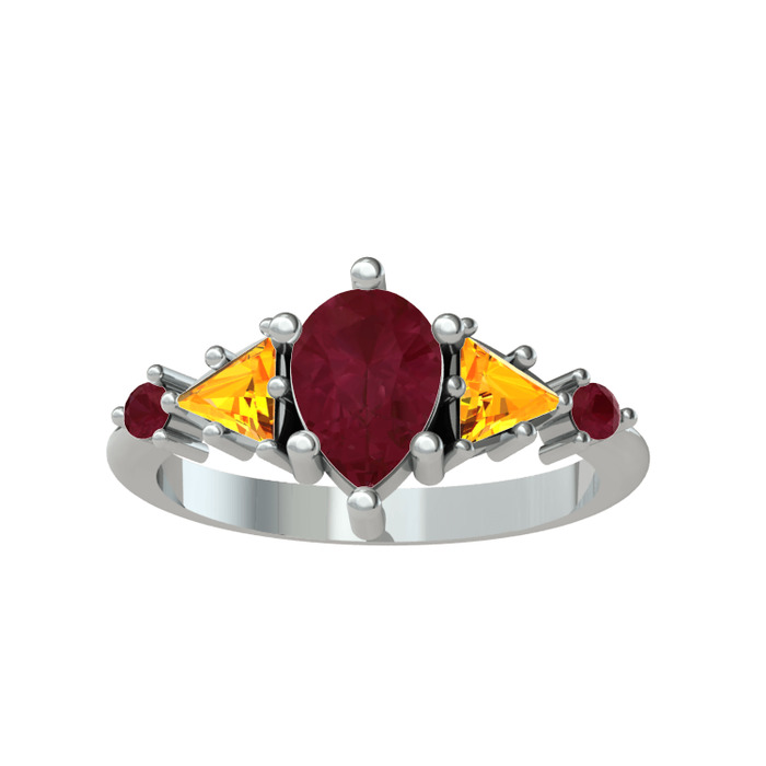 Kök yakut ve sitrin 925 ayar gümüş yüzük