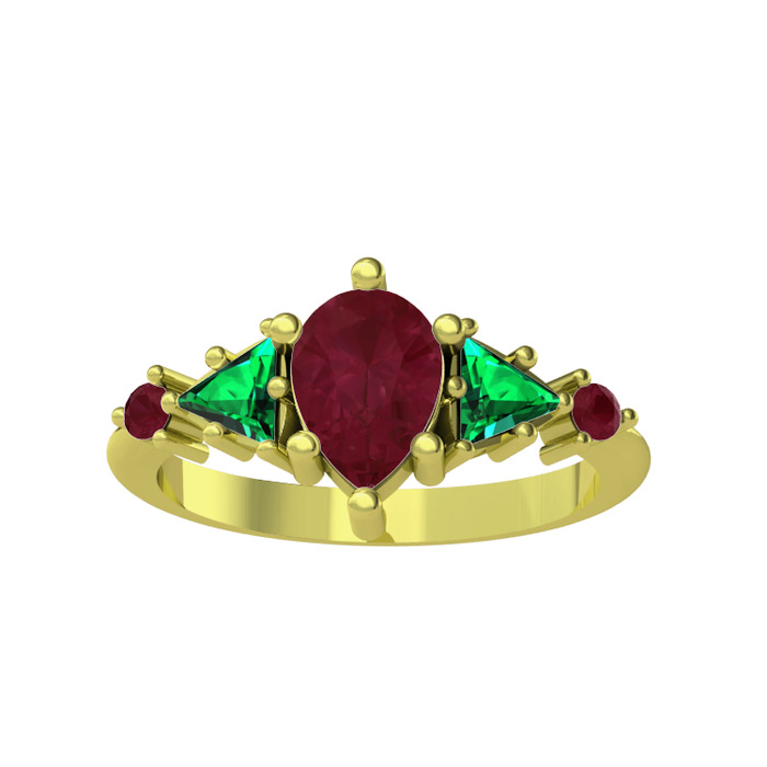 Kök yakut ve yeşil kuvars 8 ayar altın yüzük
