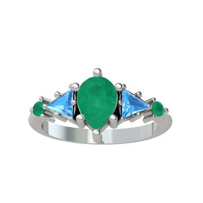 Kök zümrüt ve akuamarin 925 ayar gümüş yüzük