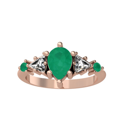 Kök zümrüt ve beyaz zirkon 8 ayar rose altın yüzük
