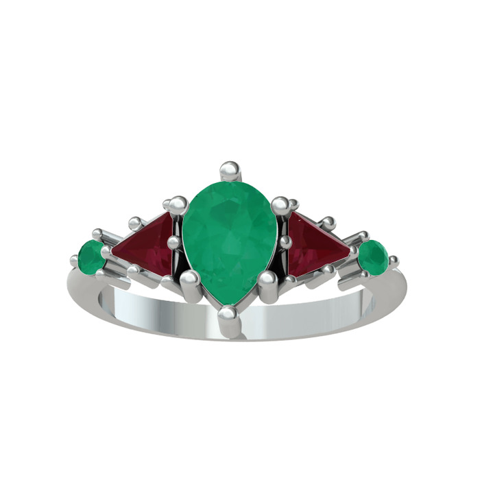 Kök zümrüt ve kök yakut 8 ayar beyaz altın yüzük