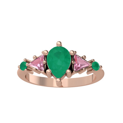 Kök zümrüt ve pembe kuvars 14 ayar rose altın yüzük