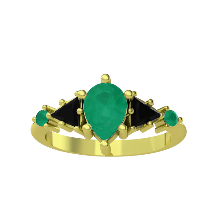 Kök zümrüt ve siyah zirkon 8 ayar altın yüzük