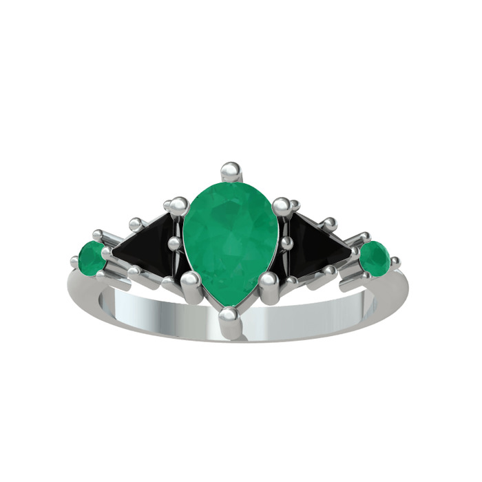 Kök zümrüt ve siyah zirkon 8 ayar beyaz altın yüzük