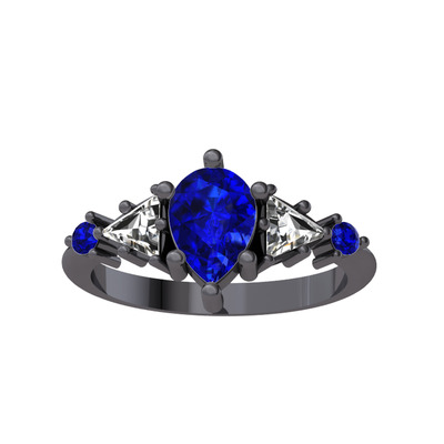 Lab safir ve beyaz zirkon 925 ayar siyah rodyum kaplama gümüş yüzük