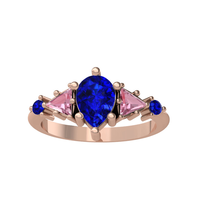 Lab safir ve pembe kuvars 14 ayar rose altın yüzük