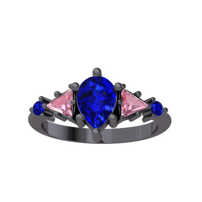 Lab safir ve pembe kuvars 925 ayar siyah rodyum kaplama gümüş yüzük