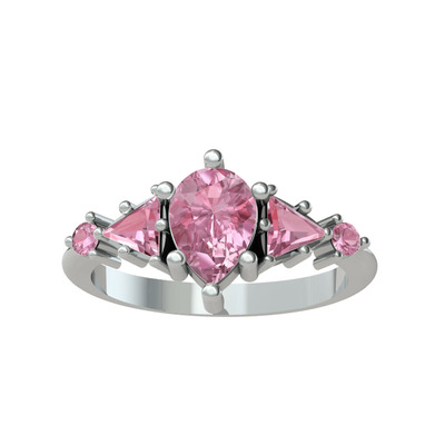 Pembe kuvars 8 ayar beyaz altın yüzük