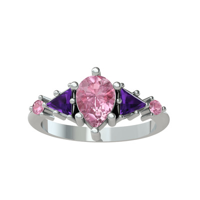Pembe kuvars ve ametist 18 ayar beyaz altın yüzük