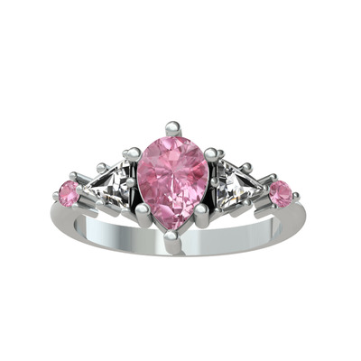 Pembe kuvars ve beyaz zirkon 18 ayar beyaz altın yüzük