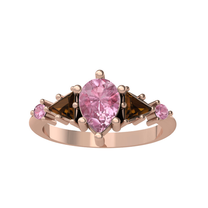 Pembe kuvars ve dumanlı kuvars 14 ayar rose altın yüzük