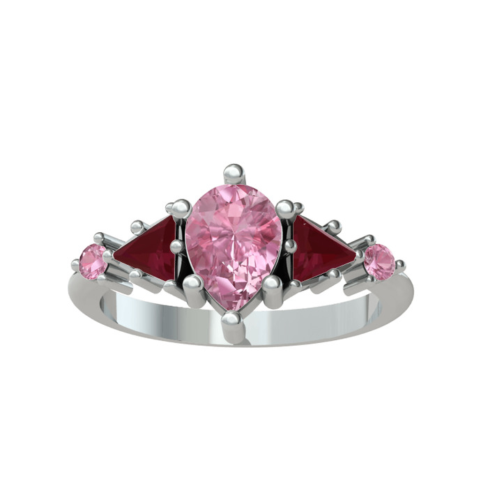 Pembe kuvars ve kök yakut 18 ayar beyaz altın yüzük