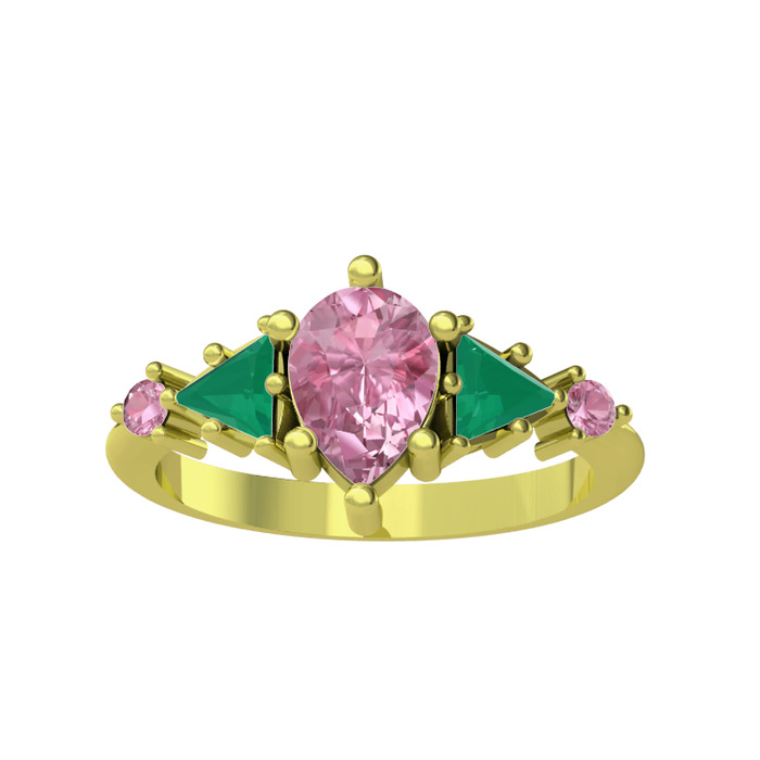 Pembe kuvars ve kök zümrüt 8 ayar altın yüzük